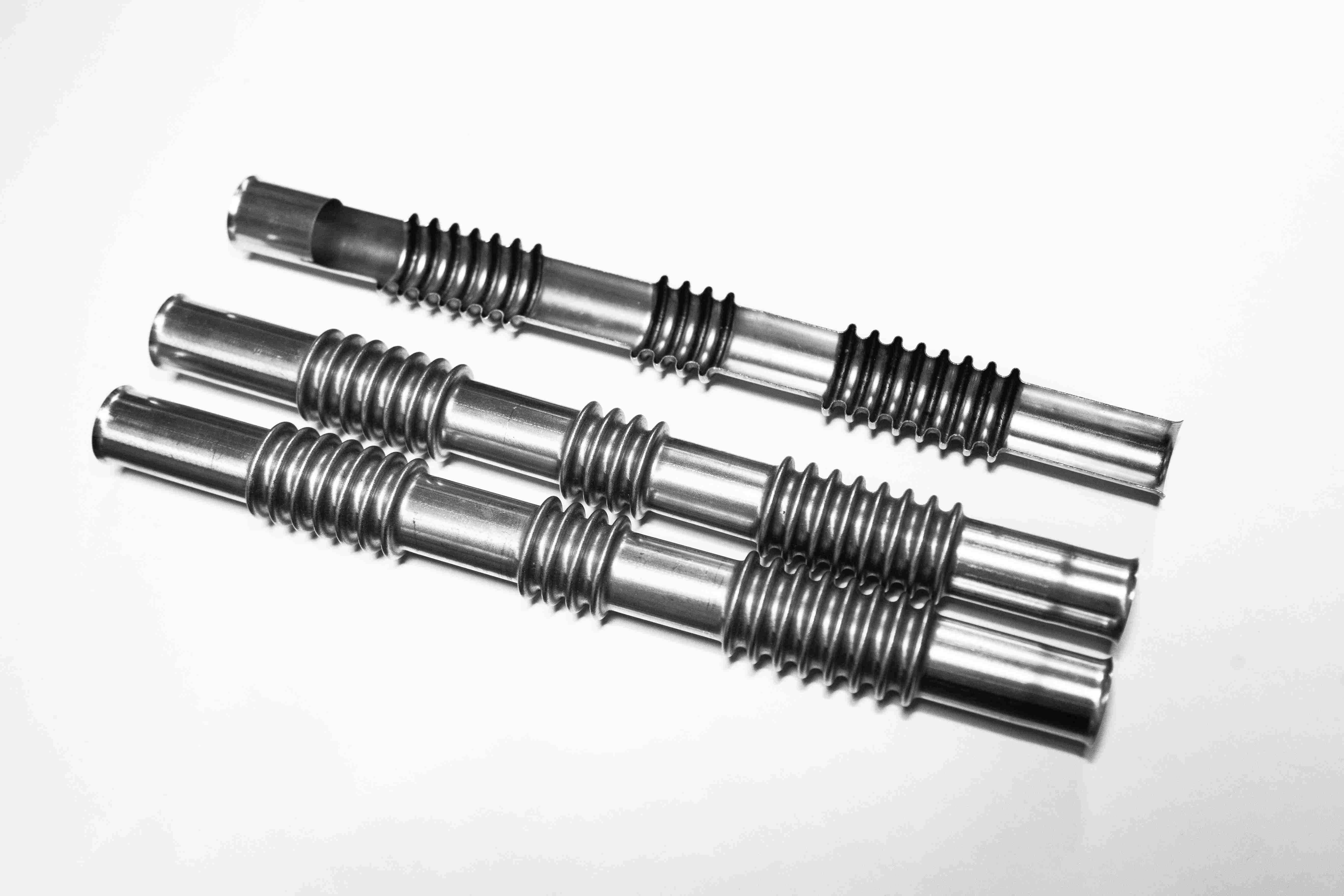 The working principle of this device is to place the pipe fittings on separate molds, use an oil cylinder to drive the joint to lock the mold, use high-pressure water to expand the pipe fittings in sections (bulging), and then use a servo driven screw to push the molds to close and form a corrugated pipe (pushing wave).